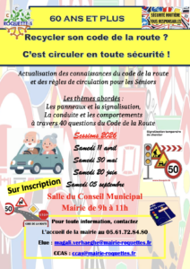 Le CCAS de Roquettes organise des sessions d’actualisation des connaissances du code de la route pour les seniors de plus de 60 ans, en partenariat avec l’auto-école ENODRIVE.